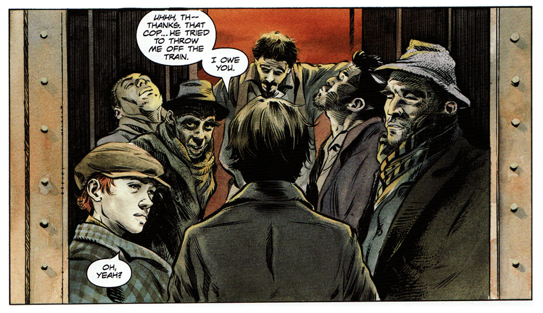 While 30 Days of Night employed an expressionistic style to convey a sense of the supernatural, the artwork here is naturalistic, in keeping with the text. The layout