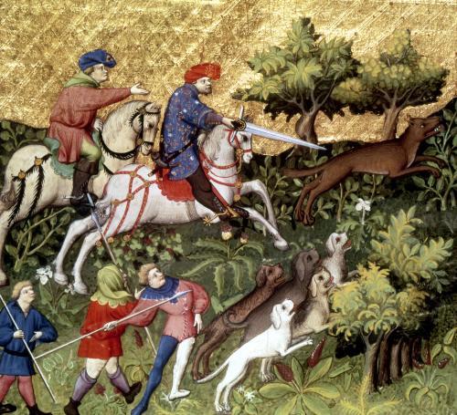 MEDIEVAL tapestry shows noblemen in hot pursuit of a werewolf.
